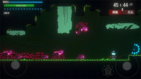2、利用屏幕左侧的按键操控角色的移动方向,借助屏幕右侧的控制按键进行瞄准与射击,以此清除行进途中的怪物和敌人。
