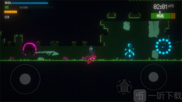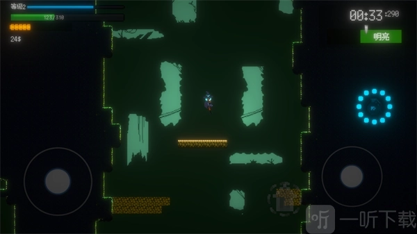 左边的摇杆用于控制移动方向,左上角则显示着等级信息以及血量和子弹的提示。