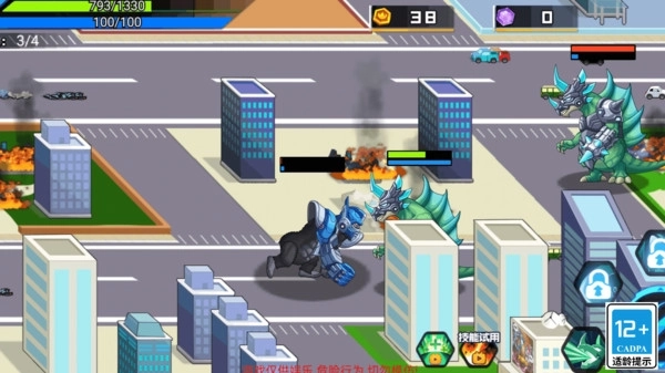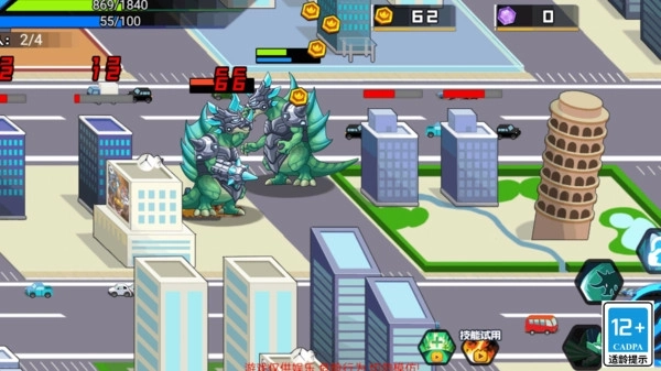 4、所有场景都十分精彩,你可以通过提升暴龙的属性,打造出一个终极的城市破坏者。