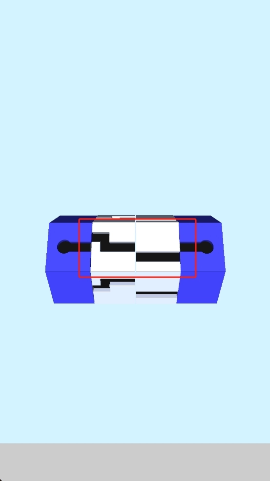 观察蓝色装置内的黑白滑块布局,拖动红色框选区域的滑块,调整其位置,尝试与黑色部件的凹槽适配,推进拼接进程。