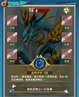 龙鸣守护:遭受攻击时有10%的概率触发效果,触发后自身所受伤害减少20%,同时在接下来的5秒内进入圣尊附体状态,期间被暴击的概率降低10%