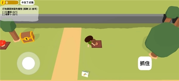 2、首先,我们借助左侧的虚拟摇杆,把黏脚小人移动到菜地上,先进行锄地操作,只需点击就能完成。