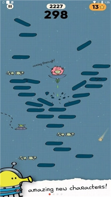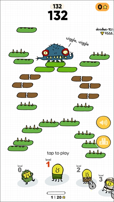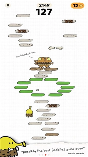 涂鸦跳跃2这款游戏采用了充满卡通漫画色彩的画面风格,延续了前作简单有趣的玩法设计,并且在第一部的基础上新增了八位全新角色,是一款十分好玩的休闲平台跳跃游戏。