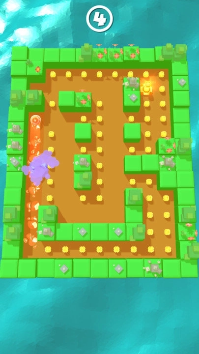 2、在一些游戏场景中有着一些喷火的柱子,玩家在操作角色吃豆子的时候需要注意,不能被烧到。