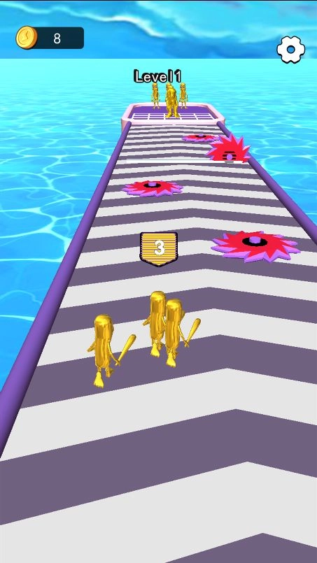 在赛道上奔跑,收集金币、异兽碎片之类的资源,避开陷阱和障碍物。