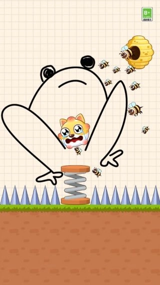 游戏里的线条与场景都遵循物理规律,像蜜蜂碰到线条会反弹、弹簧蓄力后能弹射,这样的设定让游戏更具真实感和逻辑性。