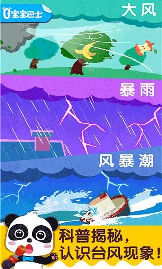 精彩的剧情搭配超多不同的关卡挑战,还有多种模式可供体验,能助力宝宝学习各类知识。2、沉浸式的剧情与各式各样的关卡设计相结合,把不同的知识呈现出来,帮助宝宝熟悉各种天气相关的知识。