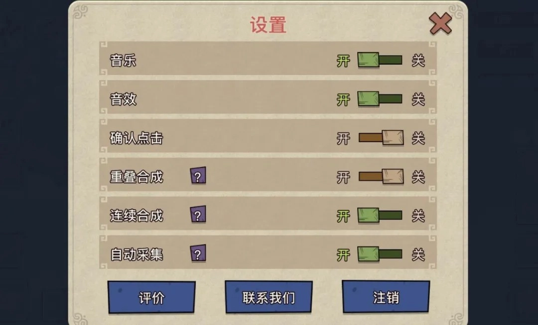 背景音乐能按照个人喜好决定开启或者关闭,关闭之后可以一边听歌一边玩游戏;不过自动采集和连续合成功能建议关闭,不然小幻兽会没有秩序地采集,浪费体力还会让场景变得混乱。