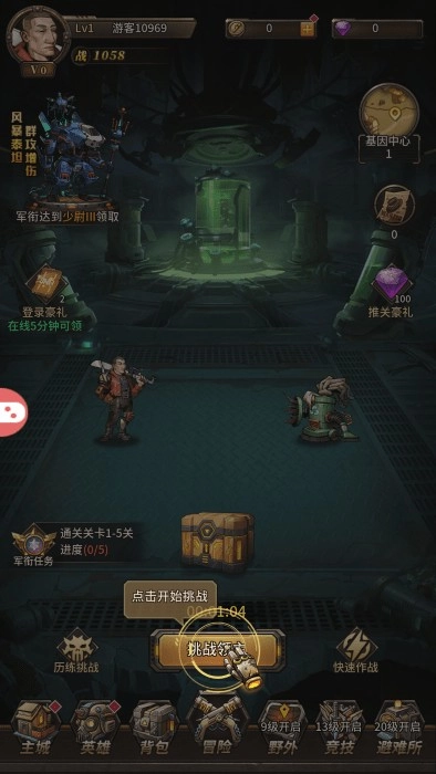 打开这款游戏后,首先会进入剧情过场环节,之后战斗功能将正式解锁,此时点击“挑战首领”按钮,就能开启初始的战斗任务。