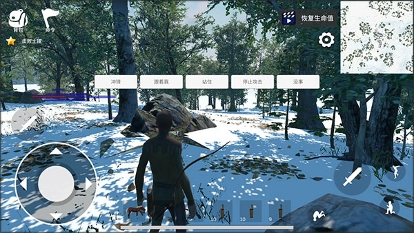 2、进入游戏后,可借助左侧轮盘操控角色移动,右侧轮盘则用于控制人物动作,包括瞄准射击、跳跃、下蹲以及翻滚等操作。
