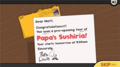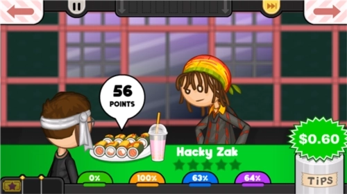 披萨店是最早推出的作品,设施相当简陋,得分的关键在于把菜品按照区域形状中心对称摆放,这需要一定的几何思维能力。真不明白一个披萨只放两颗蘑菇怎么能吃得满足。 汉堡店属于比较早期的类型,得分点是从高处把食材丢下去,让它们准确落在正中间,操作起来有点像盖大楼。有强迫症的人很容易因为瞄准太久,导致肉饼变凉。而且有些客人会点多个肉饼,这很容易打乱制作的节奏。
