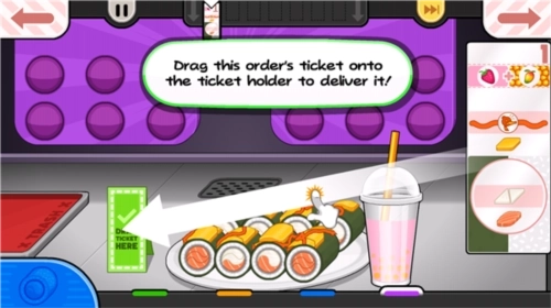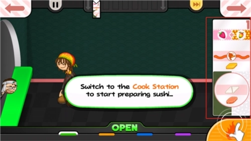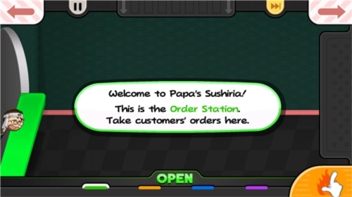 4、接下来会向玩家介绍寿司店,点击右下角的按钮;进入订单站,顾客的所有订单都在这里。