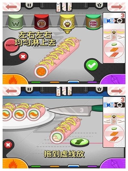 7、接下来玩家可以依据教程提示,开始制作寿司;