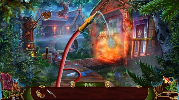 1、先点击场景中间的火炕,使用胶水配方,放上钵再用钩棒把煤炭勾出来(注意要按顺序放,否则放不了),制成胶水后,在把手上涂上胶水,回到桥上,把把手放入右边机关。