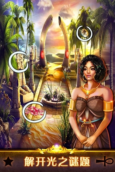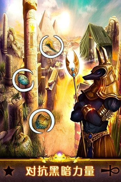 7、返回对岸,左边,装圆盘。按提示图调整配对提示数量,先配中环,再配外环。又得一个古埃及的复活神器。
