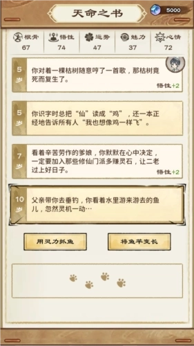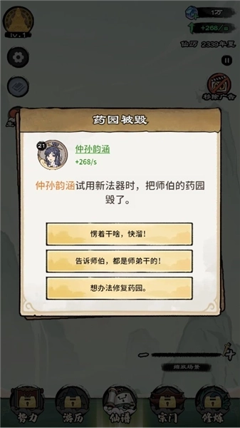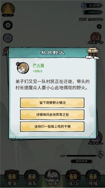 2、开启自己的修仙人生,触发事件,进行选择;