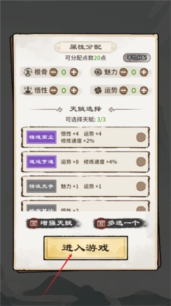 1、完善信息进入游戏,选择自己的天赋加点;