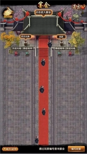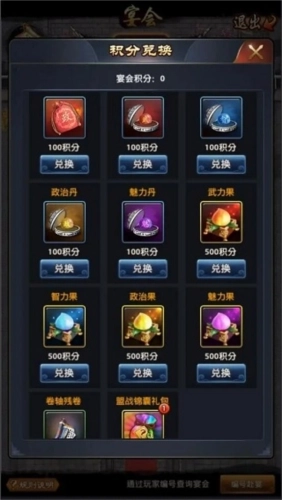 设宴招待宾客,席间畅快尽兴。发起宴会活动,邀请好友前来参加,发起者可获得积分,参与的好友也能得到同等积分。这些积分可用于兑换政绩礼包、随机盟战锦囊等各类道具。
