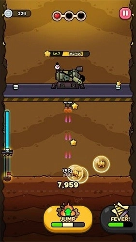 2、进入关卡后,挖掘机会自动向下行进,点击下方的“jump”按钮即可向上跳跃一段距离。
