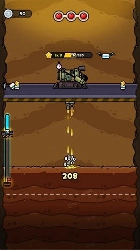 3、周围的小人会自动进行挖矿操作,以此来提升挖掘机的等级;当挖掘机等级提升后,你可以选择一项升级选项来强化自身。