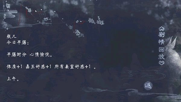 4、主动与儿媳聊天可稳定增加2点和睦值,向儿子提及府内事务则能获得1至3点不等的和睦值。
