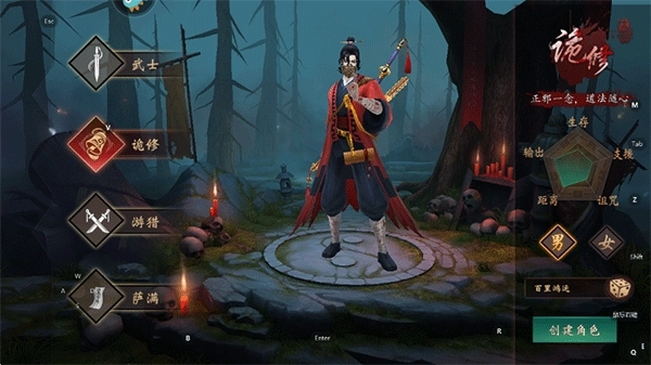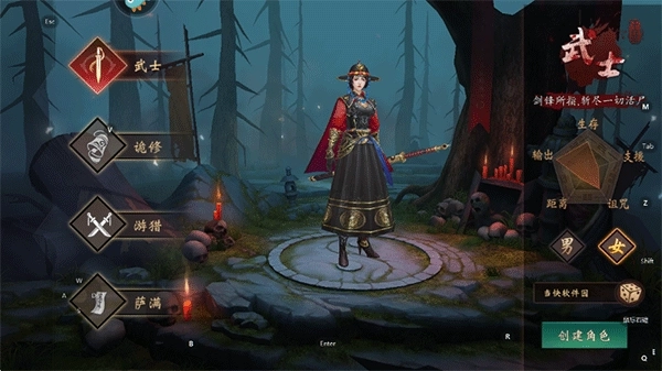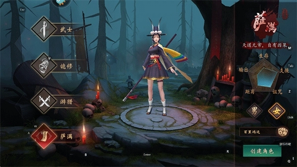 2、游戏内设有武士、诡修、游猎、萨满四大职业,玩家需从中选择一个,并输入ID来完成角色创建;