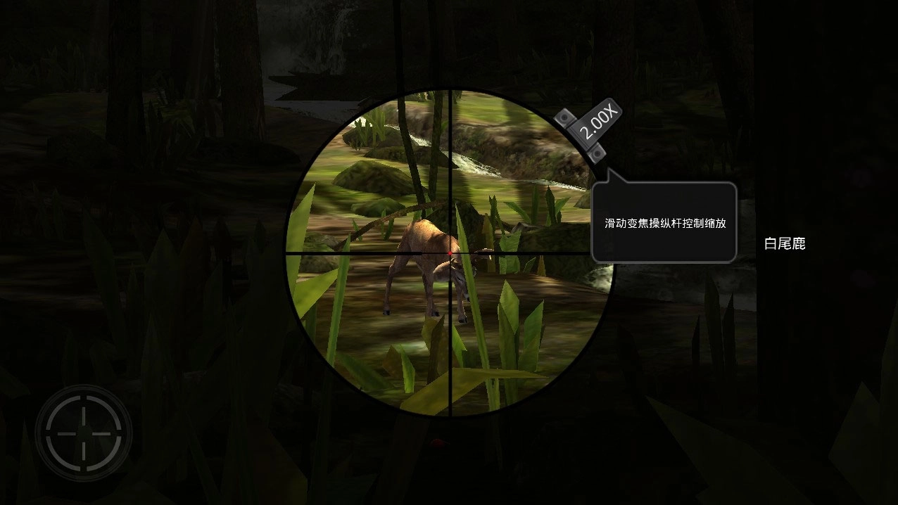 好了,接下来正式操作一次。优先攻击距离最近的目标,这样不仅威力更强,瞄准也更精准。点击左侧的准星按钮,切换至望远镜模式;在此模式下,可通过触摸操作调整放大倍率,最高可达4倍。随后开启红外线拍摄功能,就能清晰看到猎物的肺部位置,瞄准该部位射击即可。若需更换武器,点击“交换”选项即可完成切换。