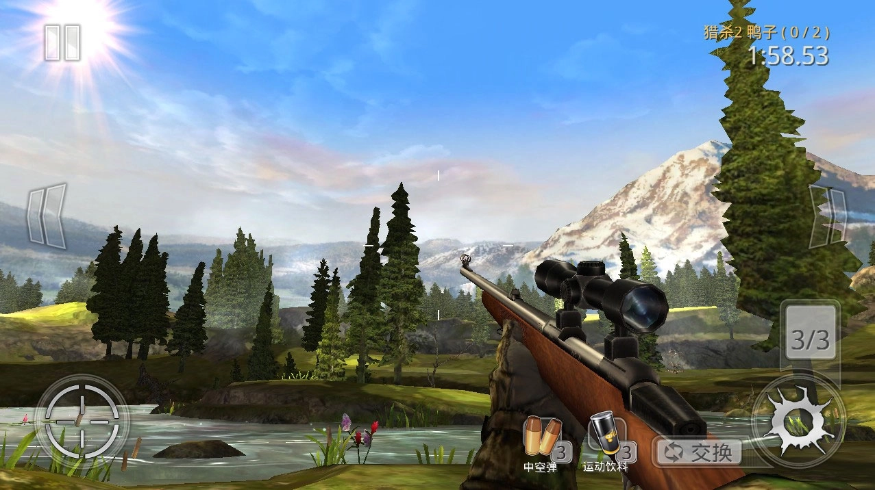猎鹿人2014(DHClassic)是一款第一人称射击类手机游戏。在游戏里,你可以暂时抛开生活中的琐碎事务,拿起手中的猎枪,无需远行就能前往北美、西北太平洋、南非等地。你既能领略世界各地的自然风光,又能狩猎各种各样的野生动物——相信这是不少人向往的生活,而这款游戏就能帮你实现这个愿望。游戏系统会引导玩家熟悉操作方式,射杀效果也十分逼真。此外,游戏设有3个地区场景,每个场景包含户外狩猎和契约狩猎两个任务。你还可以向好友发起挑战,努力登上专属的射杀排行榜。