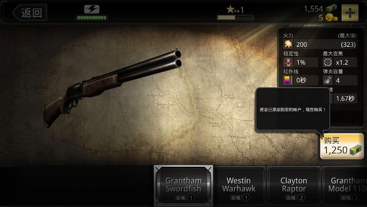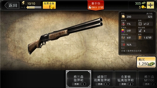 游戏开始前,首先你得有一把武器,你能在武器商店里买到步枪、冲锋枪、猎枪、手枪这四种类型的枪支。这四种枪支各有各的特点,游戏刚开始的时候,我们要使用的是步枪。