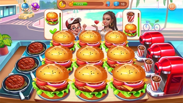 《梦幻厨房》是一款采用美式卡通风格的快节奏烹饪游戏。游戏内配备了上百种食材,涵盖肉类、蔬菜、水果、调料等各类食材,同时提供煎锅、烤箱、蒸笼等丰富厨具。玩家可以利用这些资源制作汉堡、烤肉、松饼等超过100种来自全球各地的美食,充分满足不同玩家对美食制作的多样需求。