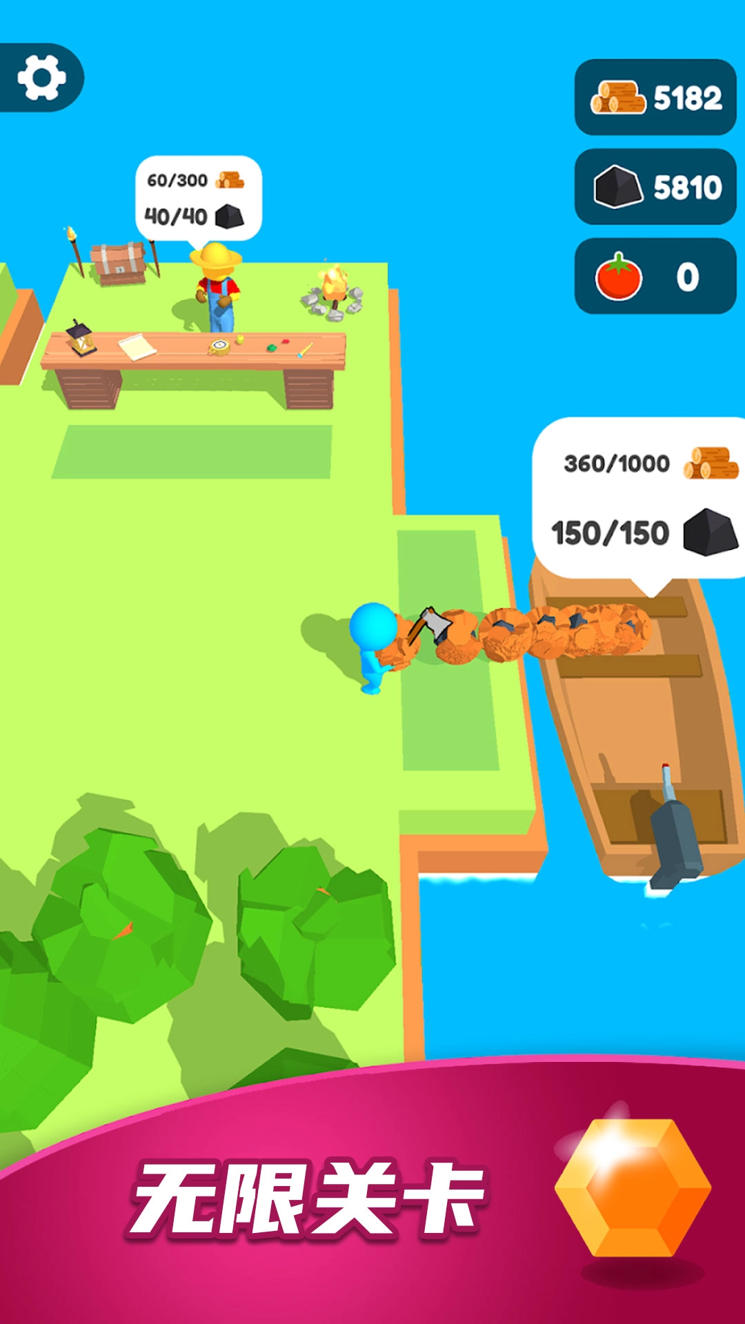 3、通过砍木和木材加工得到的木材可存放在仓库里,玩家能够查看木材的数量。