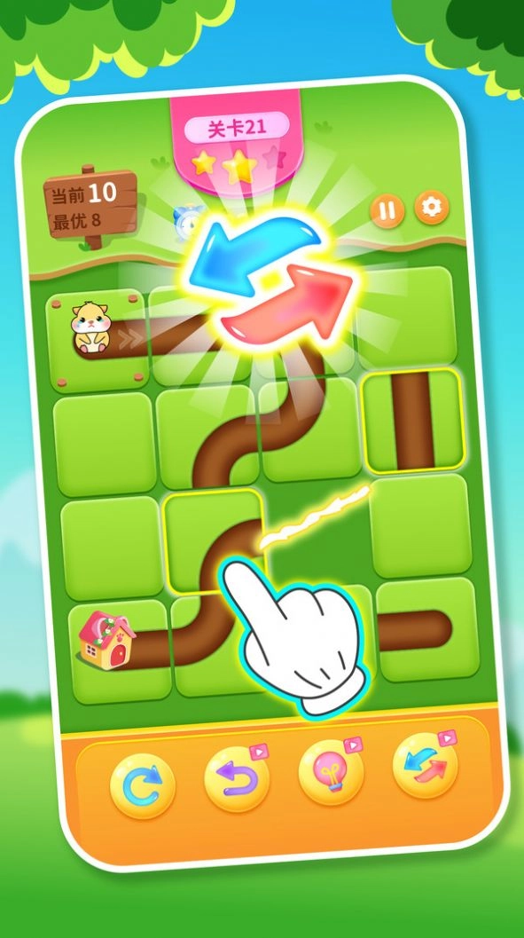 一款以传统连水管玩法为基础的休闲小游戏,玩家的目标是帮助小仓鼠顺利返回自己的洞穴。游戏过程中,玩家需要通过合理旋转水管,让水流能够顺畅地流向目标位置。一旦水流抵达小仓鼠所在之处,它就能成功回到家中。这款游戏充满趣味性与挑战性,十分适合热爱解谜的玩家。随着关卡推进,难度会逐渐提升,水管的形状和数量也会不断变化,玩家需要灵活运用策略与逻辑思维,才能完成所有关卡,帮助小仓鼠顺利抵达目标洞穴。